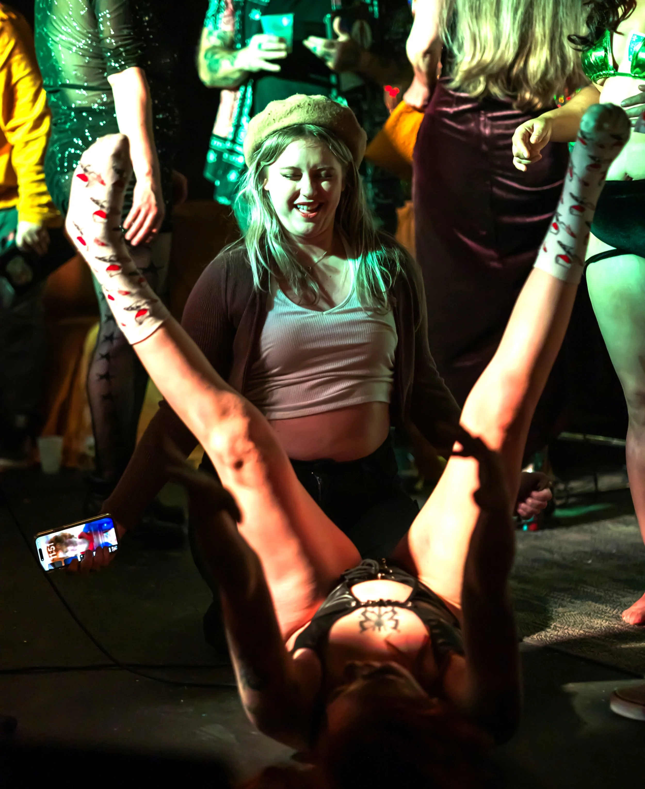 The show is 3 rounds of 1 vs 1 roast battles between a comedian and a stripper. Between roasts, there will be pole dancing as well as a series of wild, fun, & sexy games! Yep, there is a kiddie pool! Yes, those are everyone's real silhouettes. There's a stripper's pole right there in the audience? You better bet your buns there is! Bring those singles!